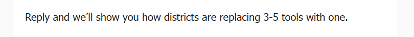 The default edtech email CTA is a demo request. “Book a call.” “Schedule time with our team.” These are reasonable asks from buyers already in consideration. Sent cold, they ask someone who doesn’t know you yet to make a calendar commitment based on a single email, and that’s a big, unlikely lift.