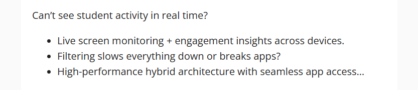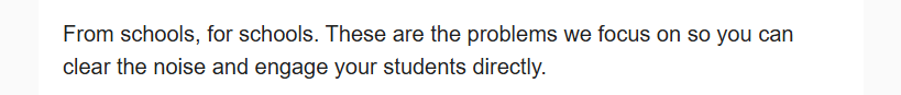 The pain points are real. The solutions are probably good. But stacking five of them in parallel bullets signals that a product manager wrote this, not someone who knows what it feels like to make critical decisions that affect hundreds, even thousands, or children. It also forces the reader to do the work of deciding which problem applies to them. Most won’t bother.